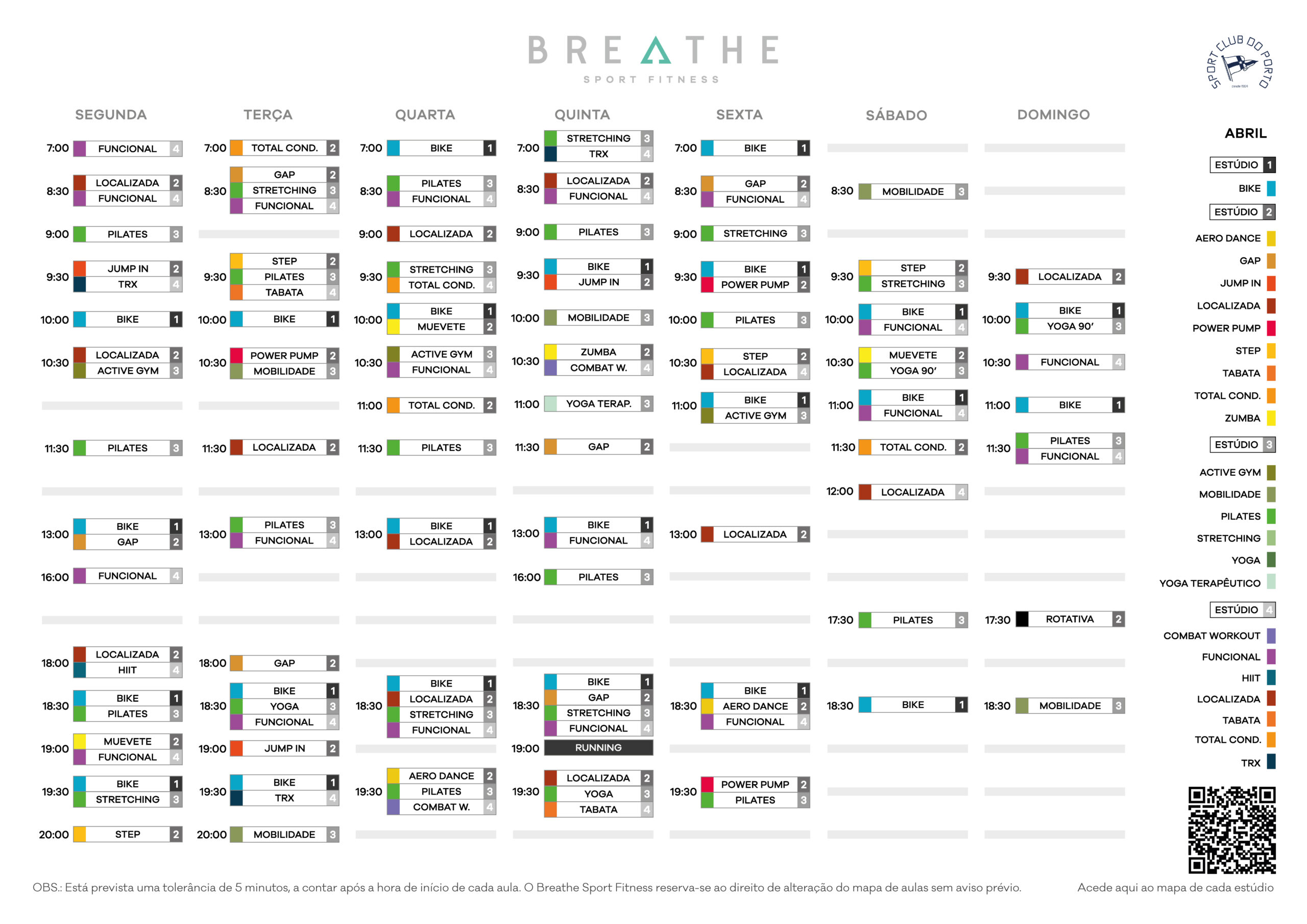 • Confira aqui o Mapa de Aulas de Grupo do mês de Abril do Breathe.
